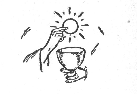 For today's feast of Corpus Christi, I started with an idea I liked, and thought that approximating the meter of the sequence, Lauda, Sion, would be appropriate. ("Approximating, because I dropped a syllable from most lines. I've been doing a lot with unstressed line endings lately, and those require a two-syllable rhyme, and I wanted a break from that.) That resulted in the following:
